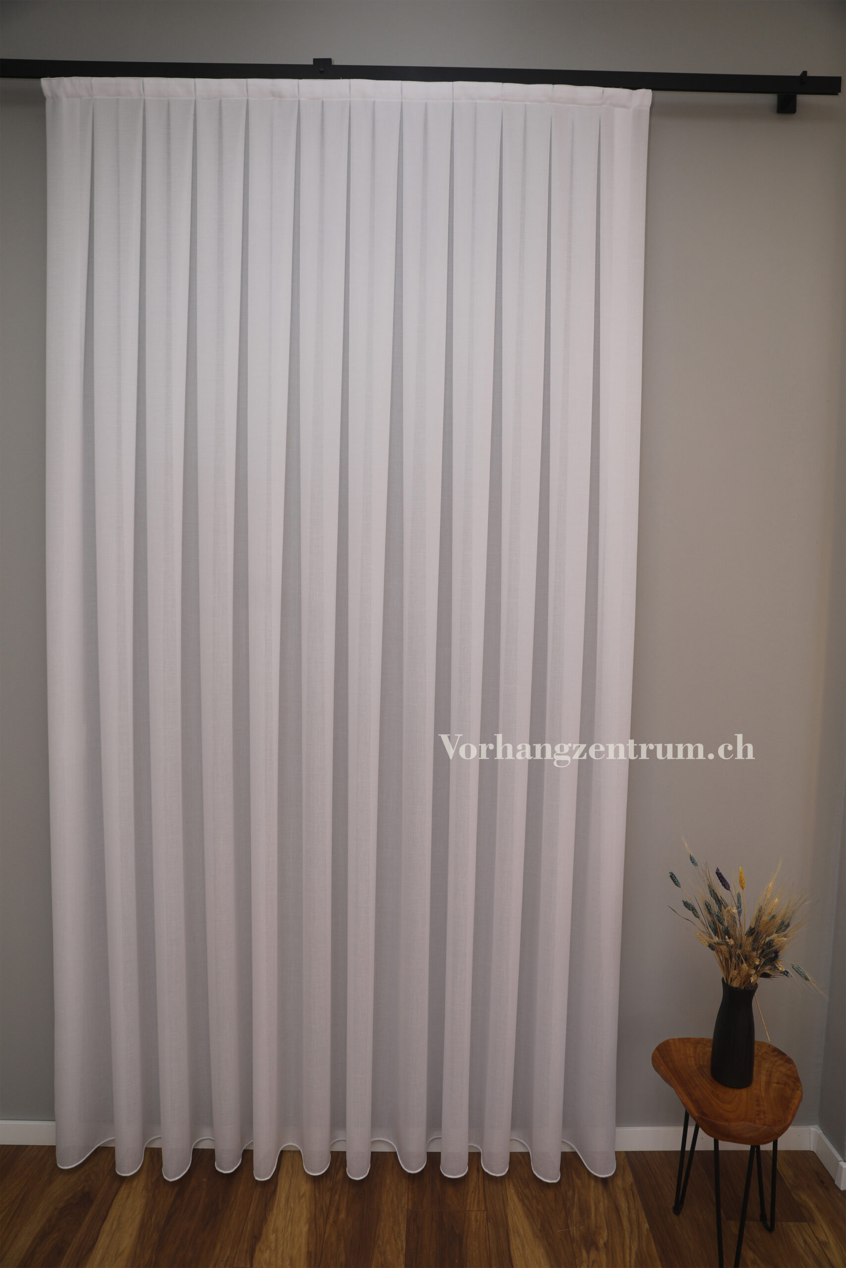 Bringen Sie mit unserem massgefertigten Tagesvorhang in Weiss Licht, Ruhe und stilvolle Leichtigkeit in Ihre Wohnräume. Dieser Vorhang vereint dezente Eleganz mit funktionaler Qualität – ideal für ein modernes, freundliches Zuhause.