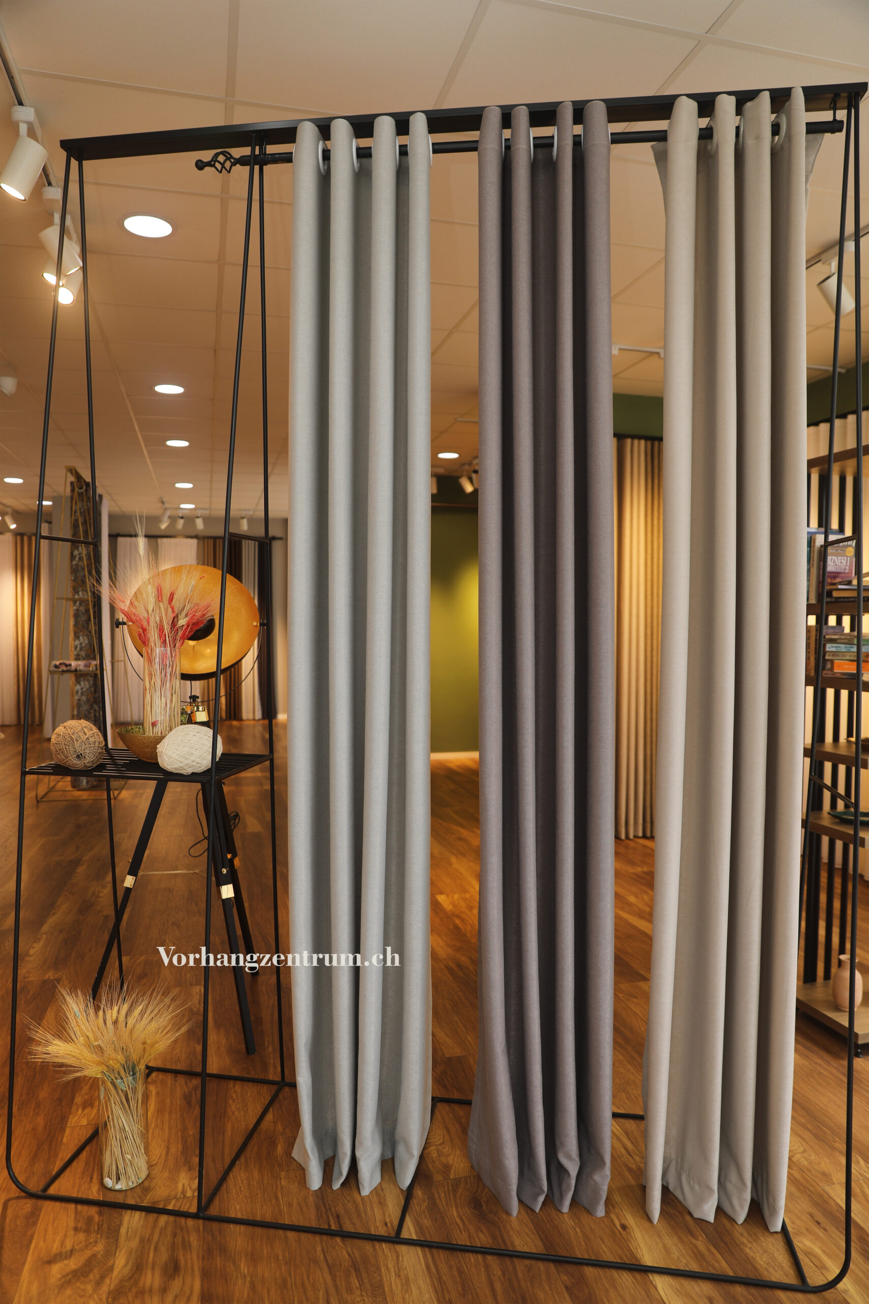 • –3 cm (unsere Empfehlung): Der Vorhang hängt ca. 2–3 cm über dem Boden – praktisch, pflegeleicht und elegant.