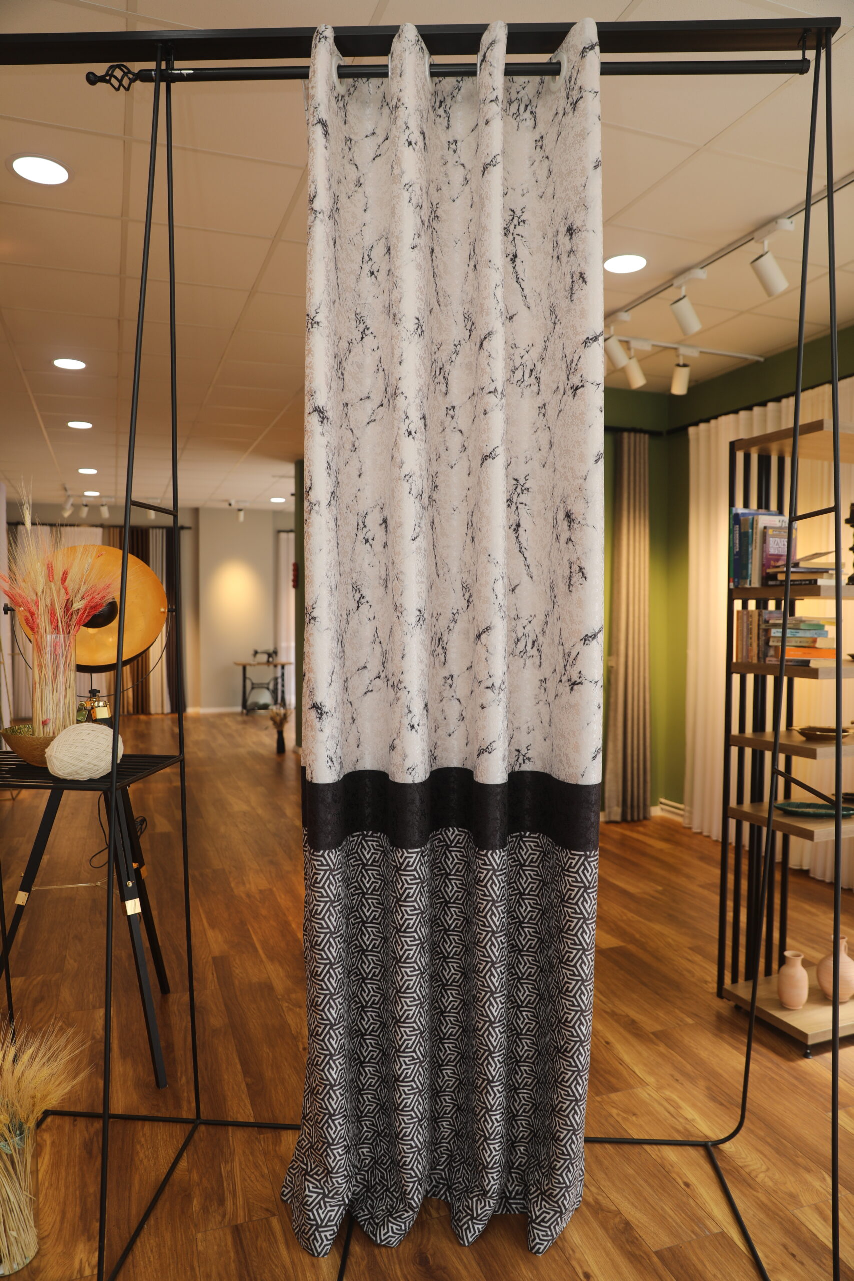 Messen Sie senkrecht von der Unterkante Ihrer Vorhangschiene oder -stange bis zum gewünschten Endpunkt.② Endpunkt: